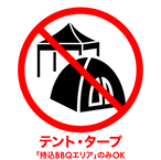 ワンタッチテント、簡易タープは持ち込みBBQエリアのみ使用可能です。その他のエリアでは、他のお客様の目線に入る為、ご使用は禁止となります。